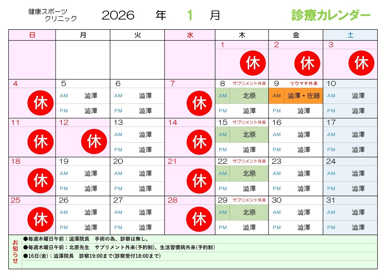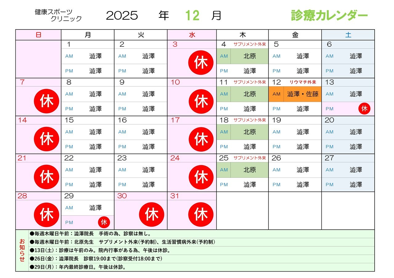 | AM | 澁澤 | 澁澤 | 休診日 | 澁澤 | 澁澤 | 澁澤 | 休診日 |